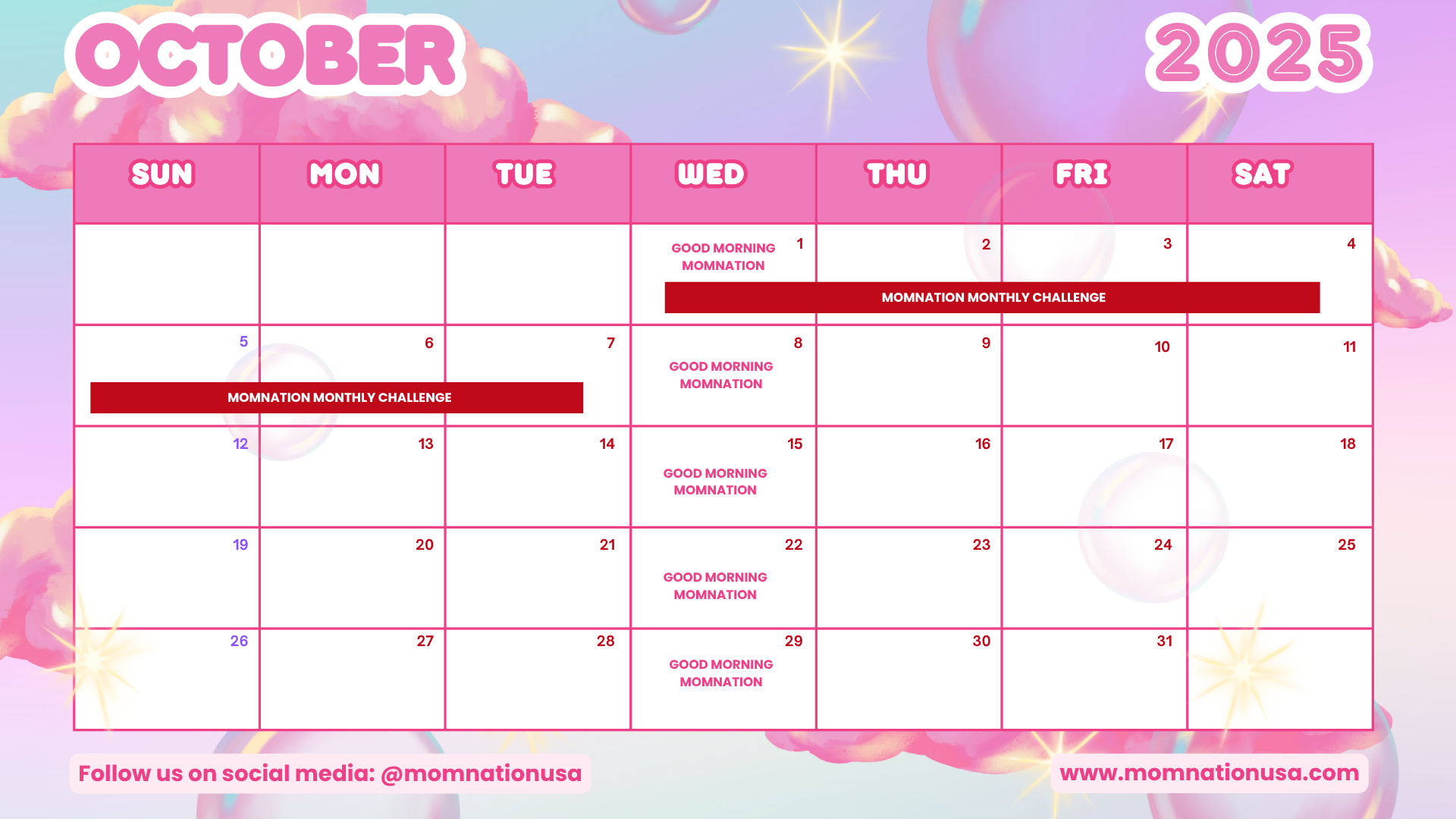 𝐎𝐜𝐭𝐨𝐛𝐞𝐫 𝐂𝐡𝐚𝐥𝐥𝐞𝐧𝐠𝐞 𝐃𝐚𝐭𝐞𝐬: October 1st – October 7th 𝐖𝐢𝐧𝐧𝐞𝐫 𝐀𝐧𝐧𝐨𝐮𝐧𝐜𝐞𝐝: October 8th during Good Morning MOMnation LIVE Ready to reset, recharge, and